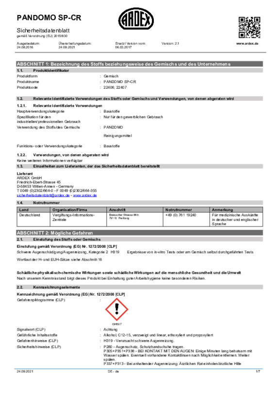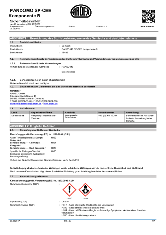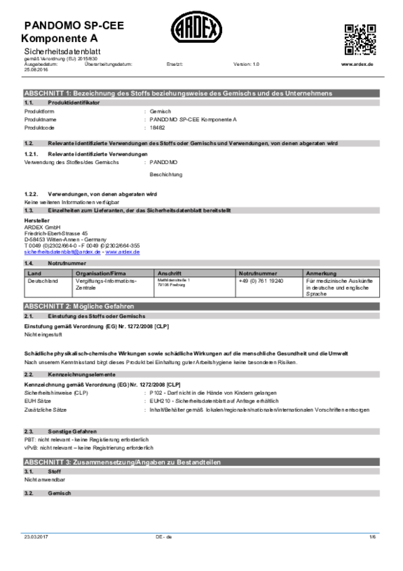 Finden Sie hier alle Sicherheitsdatenblätter zu unseren PANDOMO Produkten.