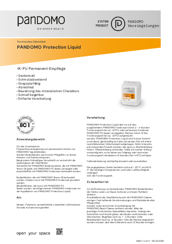 Datenblatt PANDOMO Protection Liquid
