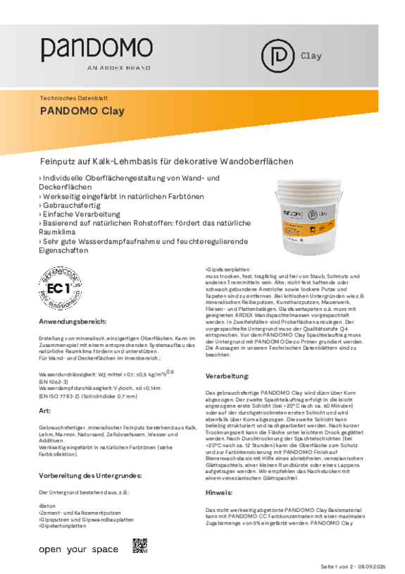 Datenblatt PANDOMO Clay