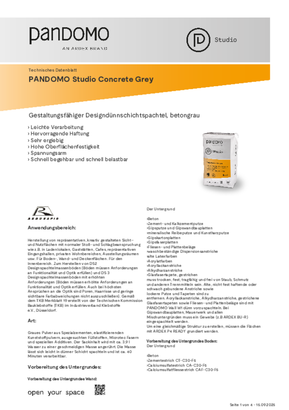 Datenblatt PANDOMO Studio Concrete Gray