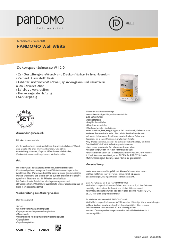 Datenblatt PANDOMO Wall White W1